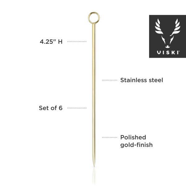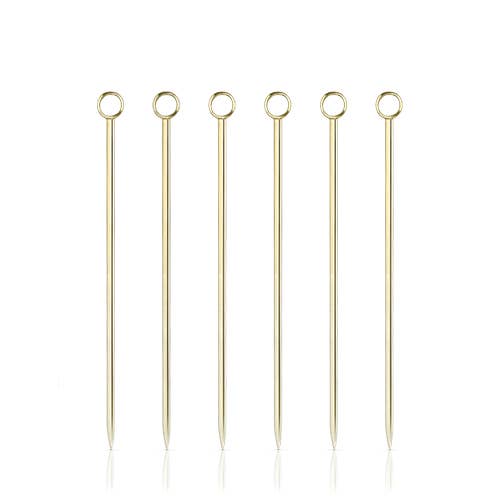 Pick your poison. Each cocktail pick in our classic set of six is finished with a small steel ring, ideal for propping an olive in your martini or a brandied cherry in your Manhattan.