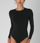 This high-neck, long-sleeve bodysuit in BLACK features a smooth, body-hugging fit designed for effortless layering or standalone wear. A timeless essential with a sleek, flattering silhouette.