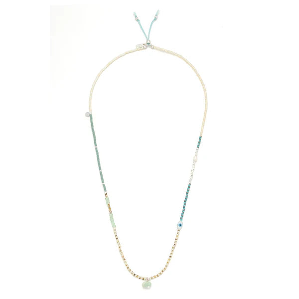 Hand strung with Japanese Miyuki Beads, oraganic pearls, and meaningful stones, each bracelet/necklace wrap comes packaged on a nostalgia-inspired postcard that celebrates life's journey & heartfelt connections.