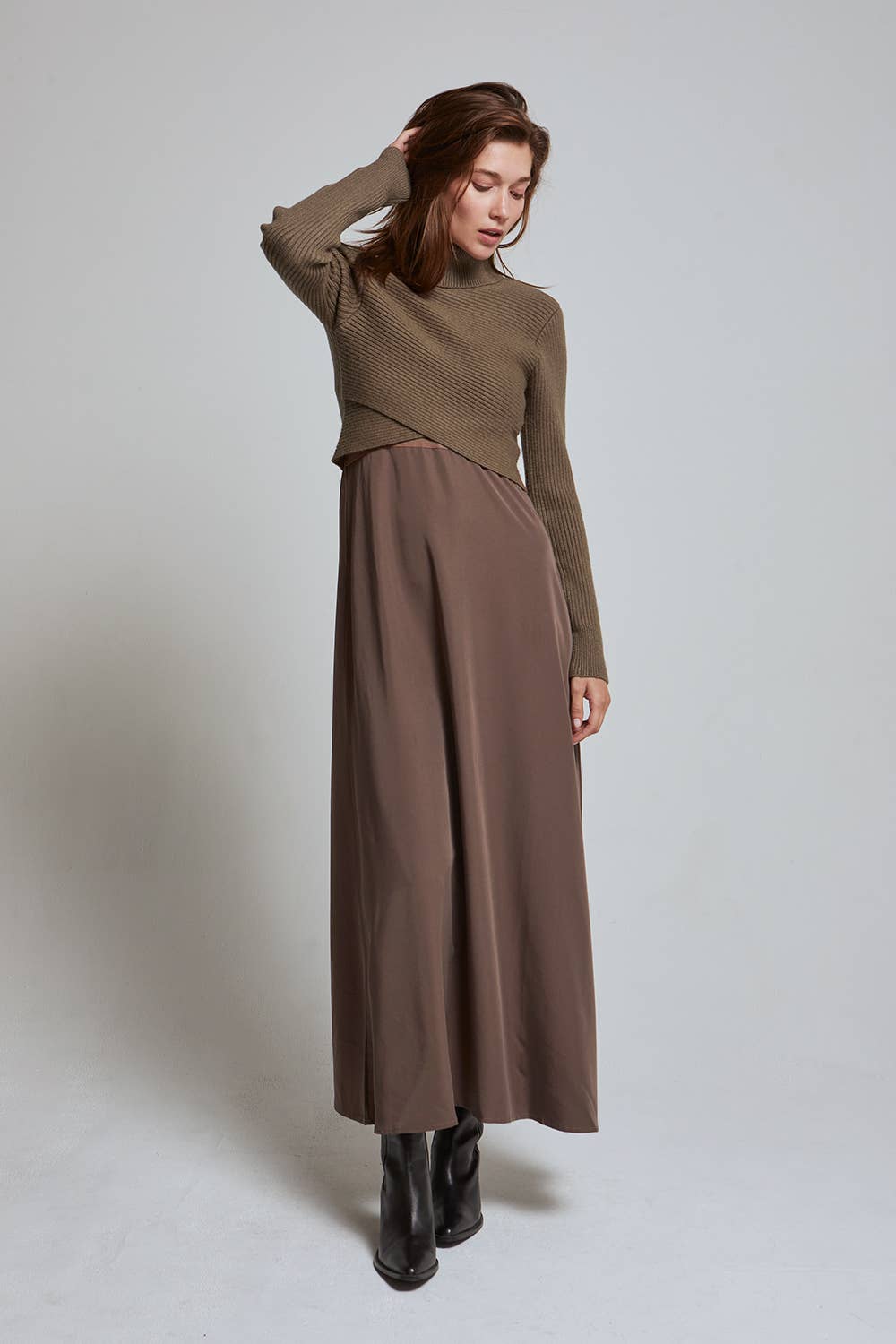 Brooks Dress and Sweater Two-Piece Set: BROWN